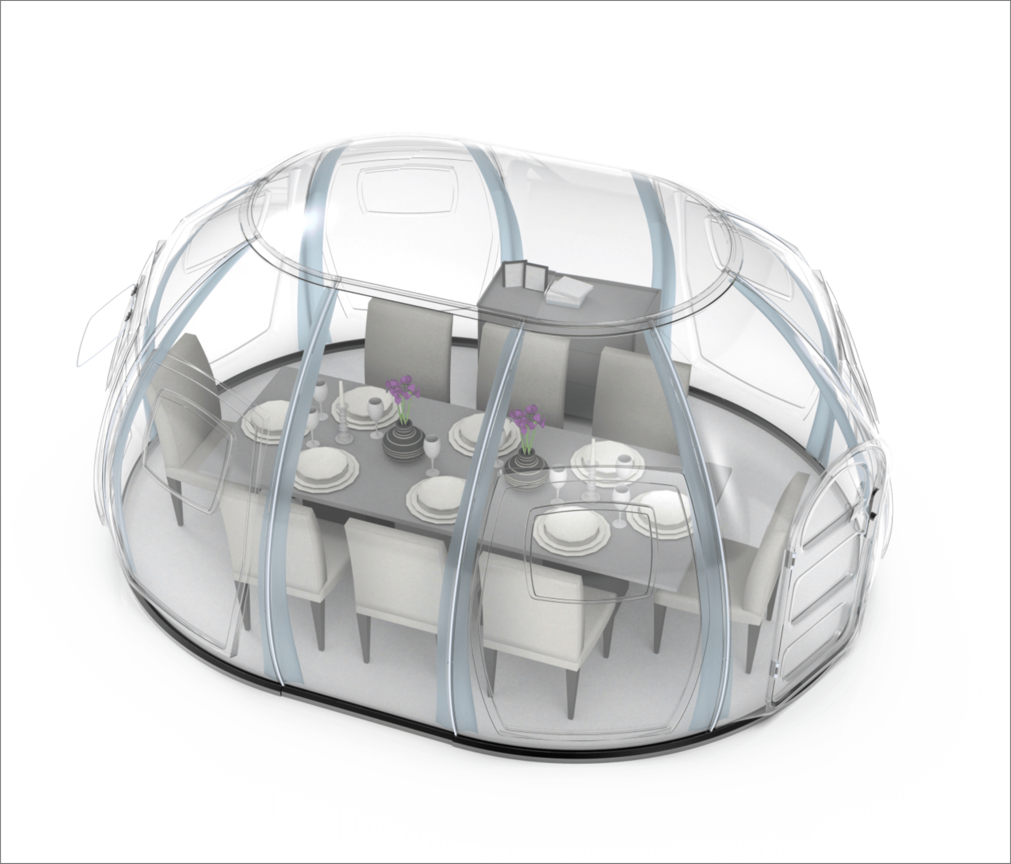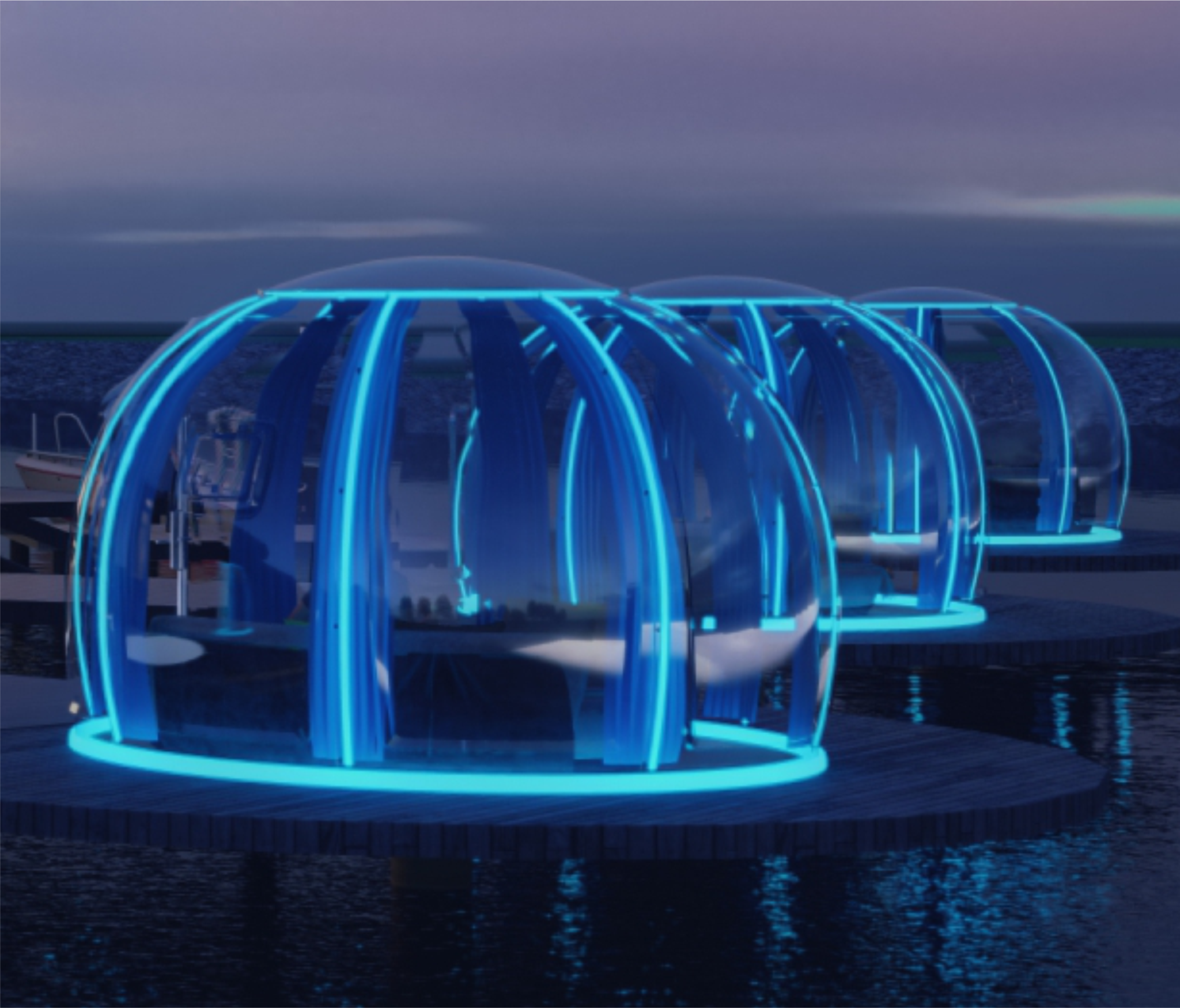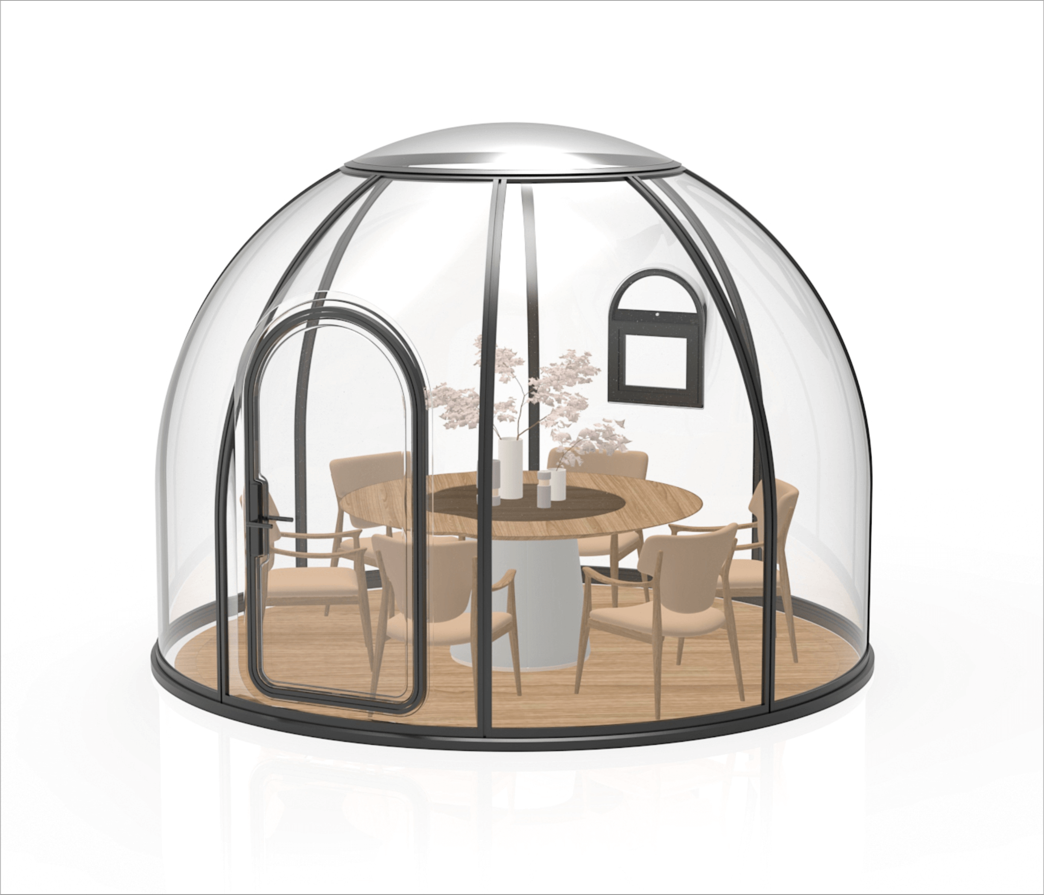 PC (polikarbonat) paneller ile, gelişmiş termoform teknolojisi kullanılarak üretilir. UV ışınlarına, rüzgâra ve yağışa dayanıklı yapısı sayesinde uzun yıllar sararma, kırılma ve çatlama olmadan açık havada güvenle kullanılabilir. Yıldızlı gökyüzünü panoramik olarak izleme imkânı sunar. Altyapı gerektirmez, taşınabilir bir çözümdür; geçici ve çevre dostu kurulumlara uygundur.