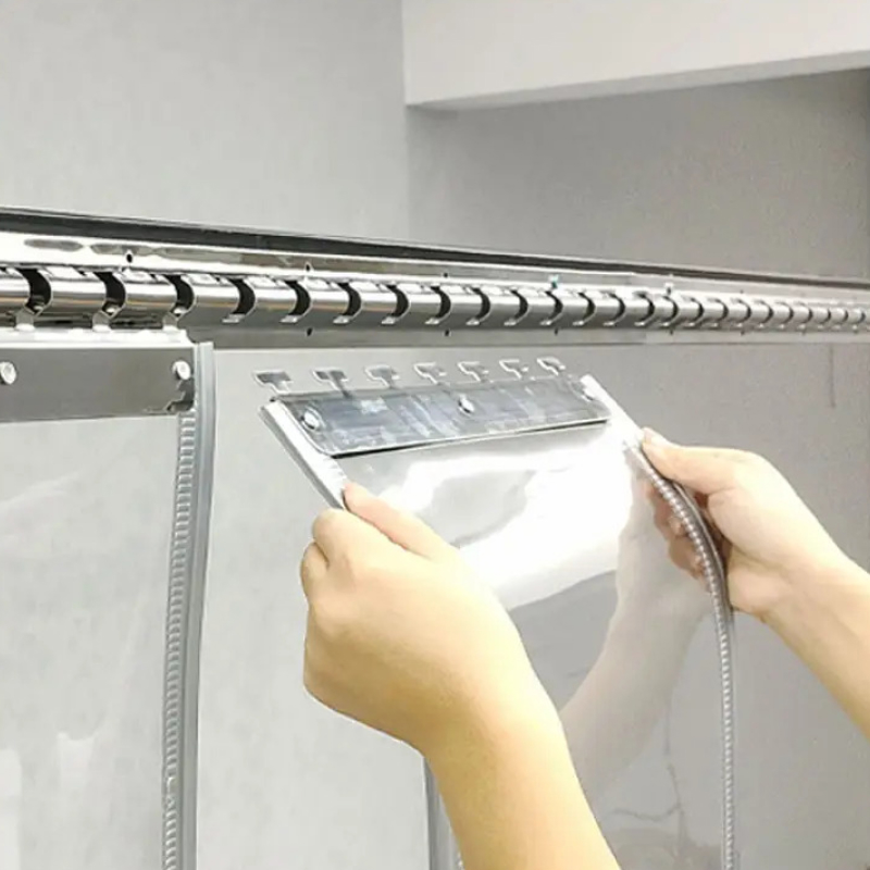 Montaj süreci son derece basittir. Kapının üst kısmına veya tavana yalnızca 4 vida ile sabitlenen düz menteşe sistemine, şeffaf perdenin karşılıkları geçirilerek hızlıca kurulum yapılabilir. Profesyonel ekipman veya özel ustalık gerektirmez; kısa sürede kullanıma hazır hale gelir.