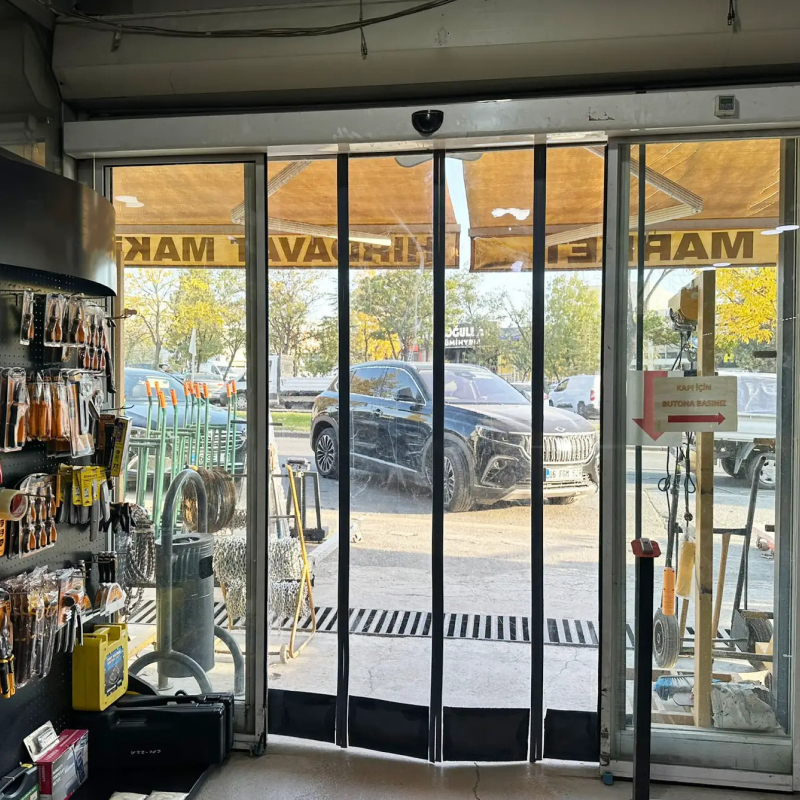 Şeffaf kenarları mıknatıslı, 2 mm kalınlığında kapı perdesi üretimi ve satışıyla; işletmelerin ve yaşam alanlarının enerji verimliliğini artıran, pratik ve güvenli çözümler sunuyoruz. Ürünlerimiz, elektrikli hava perdeleriyle aynı performansı, sıfır enerji tüketimi ile sağlayarak hem çevre dostu hem de ekonomik bir alternatif oluşturur. Özel olarak tasarlanan mıknatıslı yapısı sayesinde insanlar kapıdan geçerken hiçbir zorluk yaşamaz. Mıknatıslı bölümler kolayca açılır, geçiş sonrası ise alt kısmında bulunan ağırlıklar ve kalın, dayanıklı şeffaf branda yapısı sayesinde perde hızla eski formuna döner.