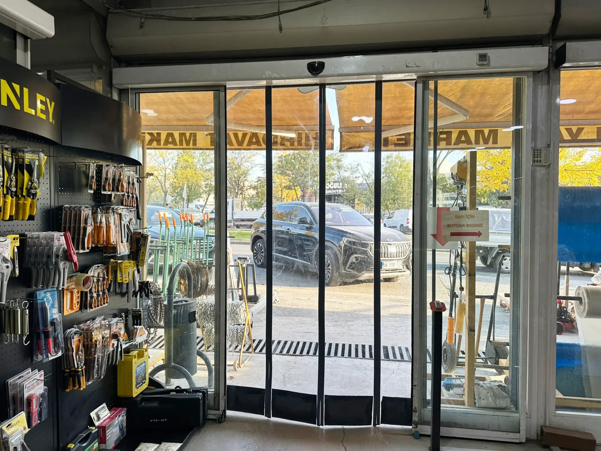 Özel olarak tasarlanan mıknatıslı yapısı sayesinde insanlar kapıdan geçerken hiçbir zorluk yaşamaz. Mıknatıslı bölümler kolayca açılır, geçiş sonrası ise alt kısmında bulunan ağırlıklar ve kalın, dayanıklı şeffaf branda yapısı sayesinde perde hızla eski formuna döner. Bu sayede iç mekân ısısı korunur, sıcak–soğuk hava kaybı minimuma indirilir, toz ve hava akımı engellenir.